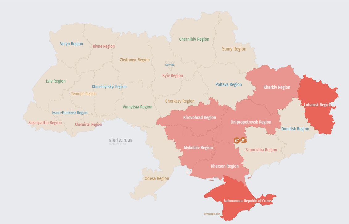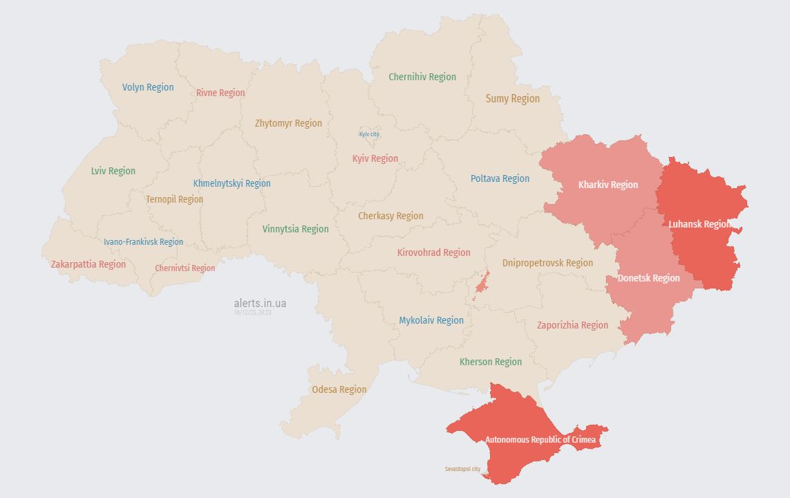Aktualna mapa alarmów przeciwlotniczych w Ukrainie.